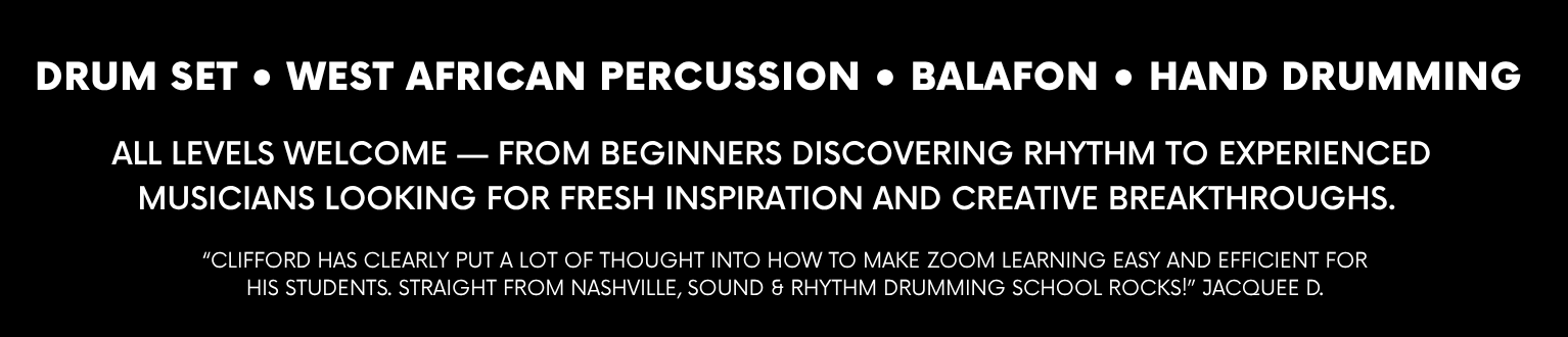 From these experiences, I’ve developed a well-rounded, personal system for playing drums that connects solid technique with creativity and groove. For those interested, we can explore creative applications of West African rhythms on the drum set, djembe, balafon, and other percussion instruments.